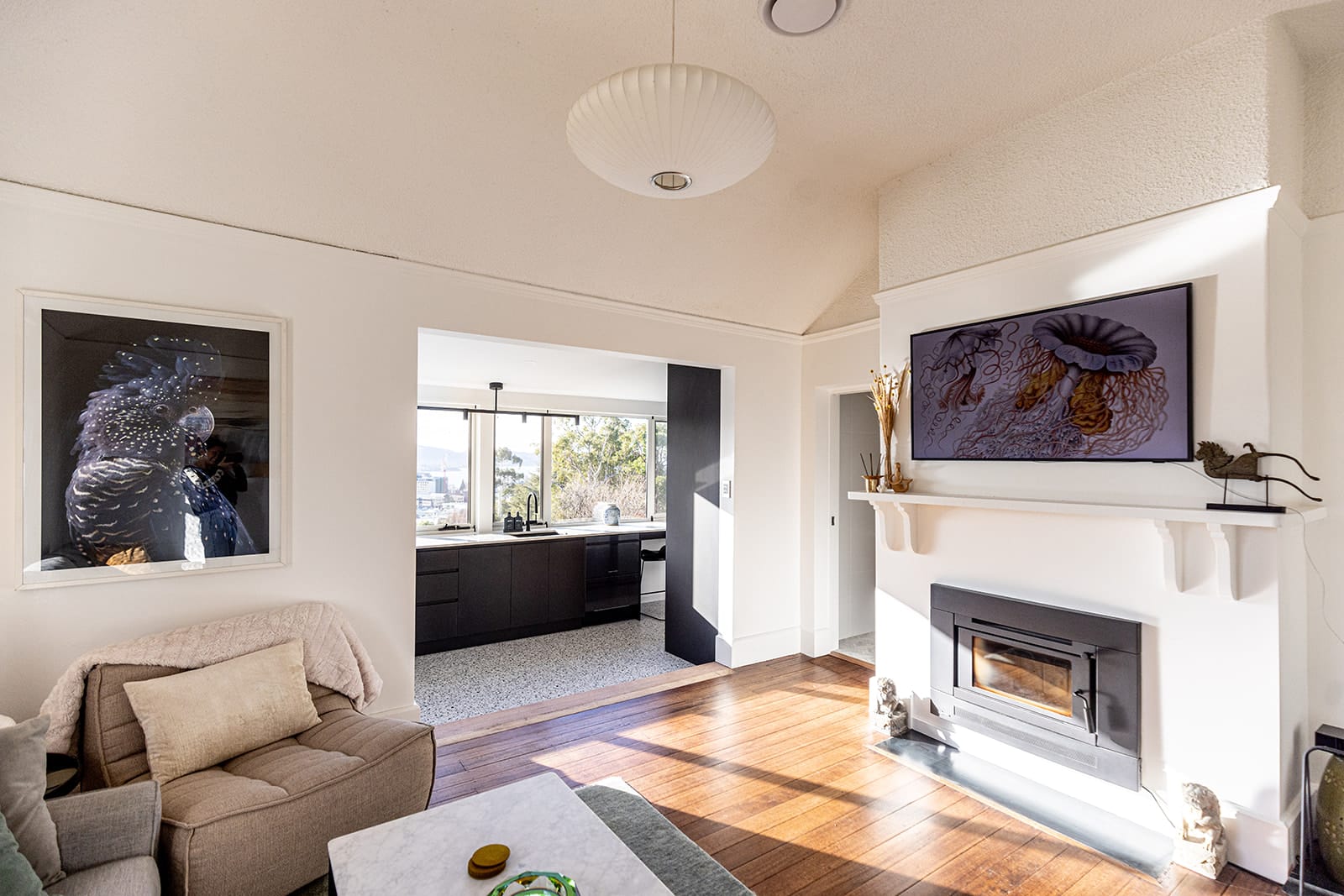 Project Frederick involved a major internal renovation of a century-old home in West Hobart to better suit the current needs of the family. Through clever redesign, the internal footprint was expanded by converting an external store room, allowing for a larger bathroom and more open social zones, while reconfiguring the living, dining, and kitchen areas to improve flow and functionality. The result is a seamless meld of historic charm and modern living.