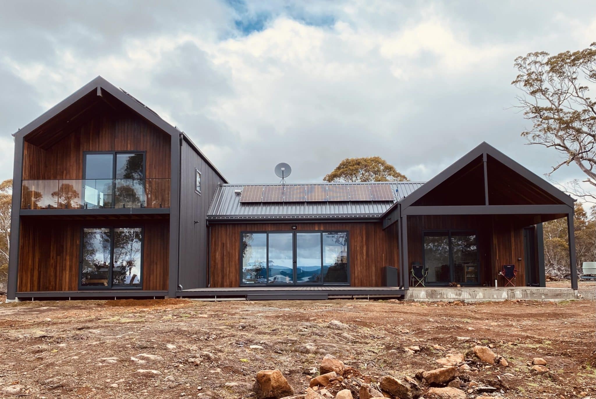 Perched overlooking Arthurs Lake in the Central Highlands of Tasmania, Project Wilburville is a fully off-grid home powered entirely by solar. Drawing on Scandinavian design influences, its brief was to deliver comfort, durability, and elegance in a setting with harsh winters and hot summers. To achieve this, the build incorporates passive building principles (good sealing and insulation), large north-facing glazing for solar gain, and a thermal mass base level to help moderate temperature fluctuations. The result is a stylish, resilient home that performs well in all seasons, and was recognised as a finalist in the 2021 Master Builders Tasmania Awards for Excellence.